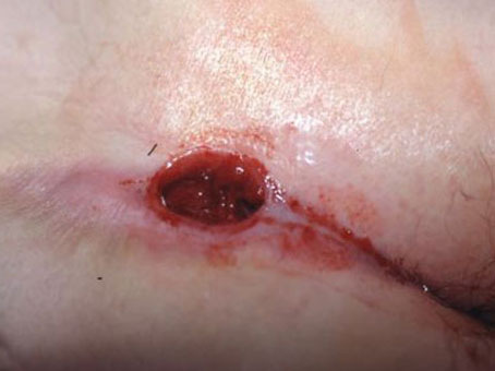 - Discharge : Purulent discharge sometimes mixed with blood from sinus soising the under cloths.